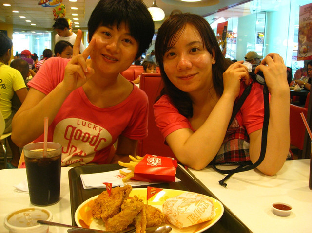 哈囉! 兩位美女看這邊^^ 最後我們就一起在菲律賓...地位相當於美國麥當勞的... JollyBee 解決我們的中餐
