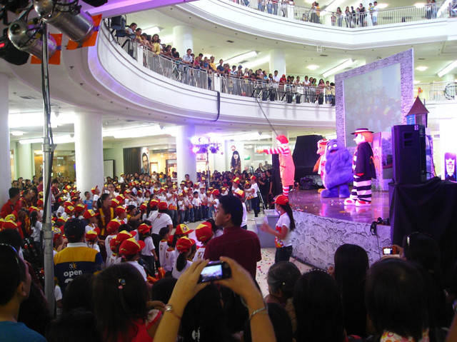 整個大廳被小朋友擠爆! 大人們為了要幫小朋友攝影... 紛紛探頭鑽動... 當然! 他們是講英文的麥當勞家族!